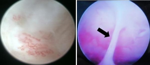 Imagem artroscópica da ATM evidenciando sinovite moderada (Inflamação da membrana sinovial e dos tecidos adjacentes produzindo artralgia)